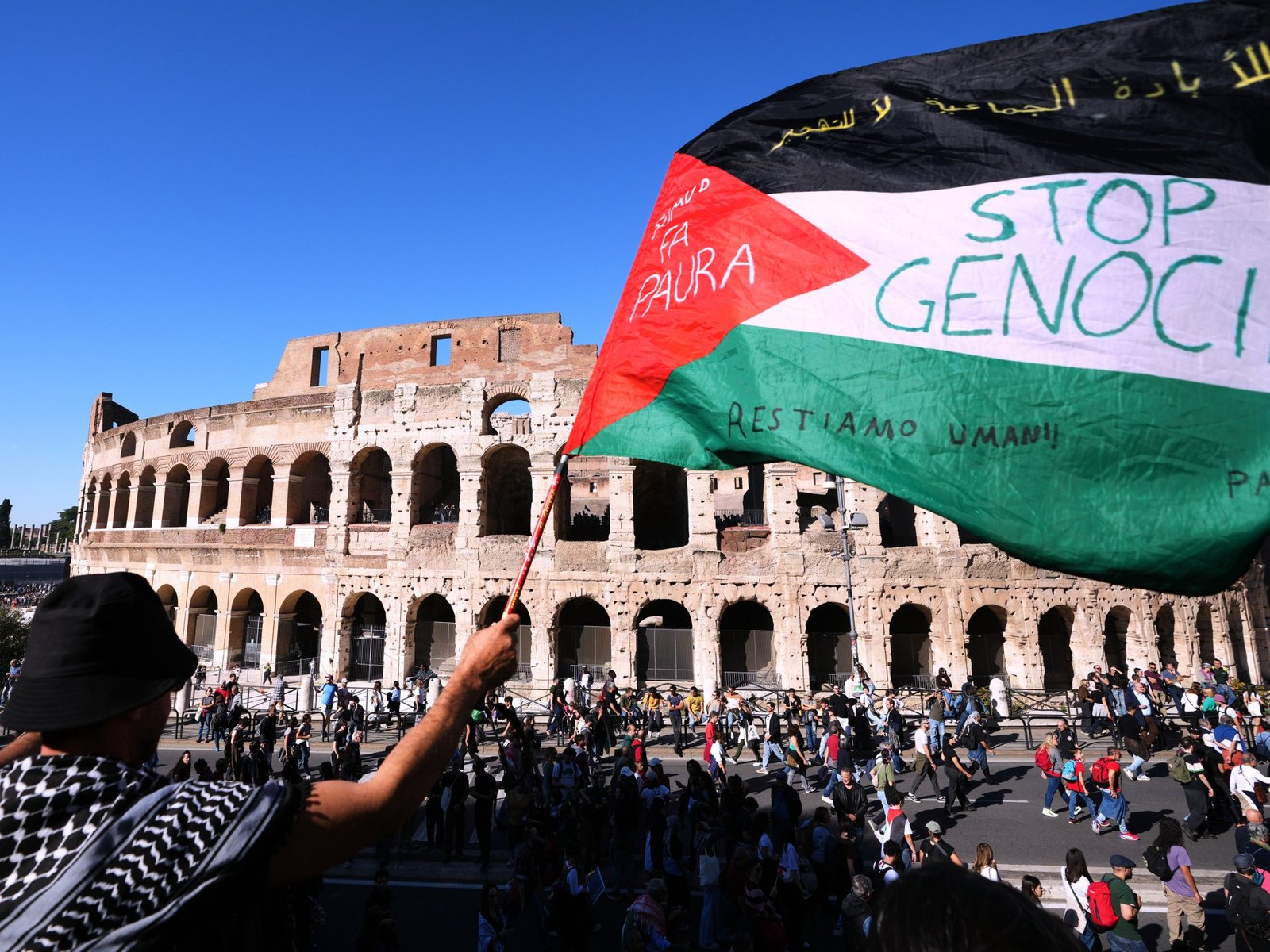 Protesters already approached the gates of Italy’s training centre in Florence last week to demand that the match not be played because of the war in Gaza — part of a national strike that saw millions of activists take to the streets.